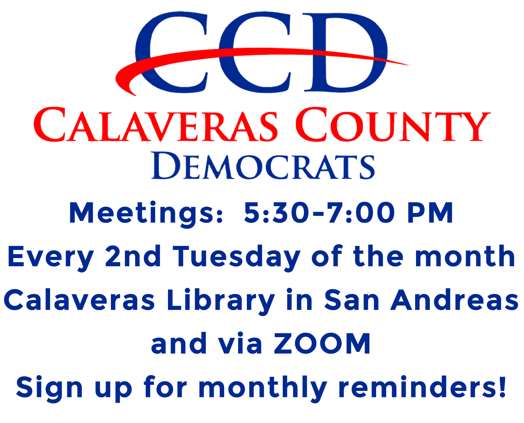Calaveras Democrats Monthly Meeting Tuesday, July 8, 5:00 pm Please join us for the next Calaveras Democrats in-person/Zoom meeting on Tuesday, July 8, at the…