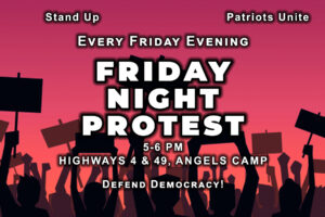 Join other active and concerned citizens EVERY FRIDAY evening from 5pm to 6pm, at the NW corner of the Highway 4/49 intersection, in Angels Camp,…
